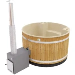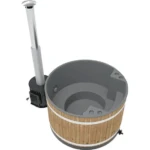 Le spa est chauffé avec poêle externe de couleur argentée qui convient pour les bassins de taille moyenne (M). Les connexions avec le bain se trouvent à l’arrière du poêle. MALMÖ est fabriqué en aluminium marin de haute qualité. Les panneaux de bois extérieurs sont fabriqués avec du pin finlandais, teinté d’une couleur charbon. Il garde sa teinte d’origine pour une très longue durée.