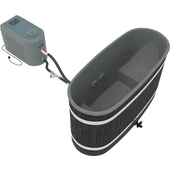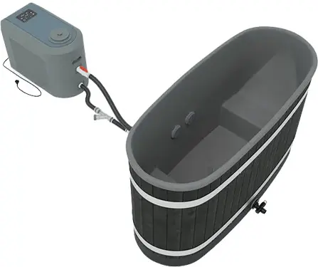 La pompe à chaleur est une unité simple composée d’une pompe de circulation, d’un filtre et d’un panneau de commande. Elle peut fonctionner en mode refroidissement ou mode réchauffage. La puissance totale de l’appareil est d’environ 5 kW. Le filtre fonctionne dès que l’appareil est en marche. La vitesse de réchauffement ou de refroidissement typique est d’environ 2°C/ heure pour les bains de taille M, tandis que pour les bains de plus petite taille, elle est de 4 à 5°C/heure.